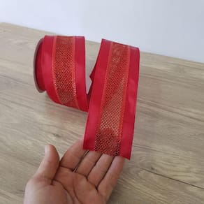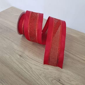 Material: ;Cetim, Telinha e Arame;Peso: 114gr.Cor: Vermelha; ;Conteúdo da Embalagem: 1 Rolo.Largura: 6.30cmComprimento: 9,14m