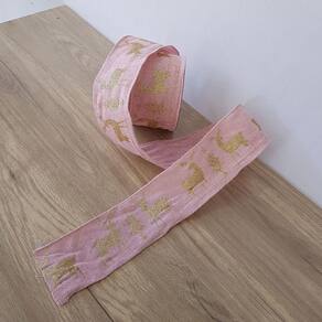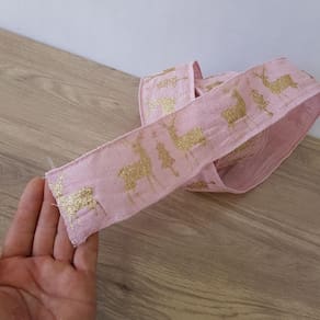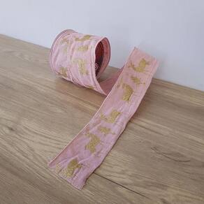 Material: Algodão, Glitter e Arame;Peso: 148gr.Cores: Rosa e Dourado; ;Conteúdo da Embalagem: 1 Rolo.Largura: 6.30cmComprimento: 9,14m