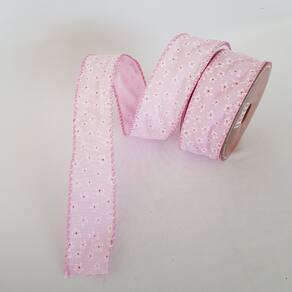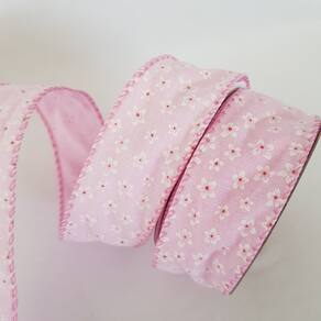 Fita Aramada Rosa com Flores Brancas Comp 9.14m -