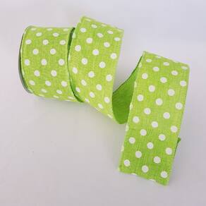 Fita Aramada Verde com Bolinhas Brancas Comp 9.14m -