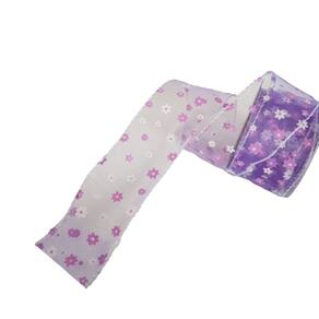 Fita Aramada Voal Lilás com Mini Flores brancas e rosa, Rolo com 9,14m de comprimento X 6.50cm de largura.