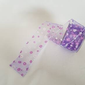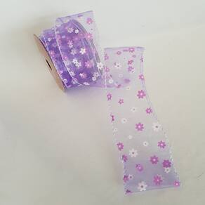 Fita Aramada Voal Lilás com Mini Flores Comp 9.14m -