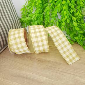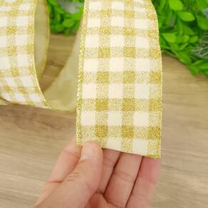 Material: Poliéster e Arame; Peso: 115gr. Cor: XADREZ DOURADO; Conteúdo da Embalagem: 1 Rolo. Largura: 6.30cm Comprimento: 9,14m