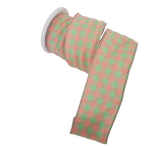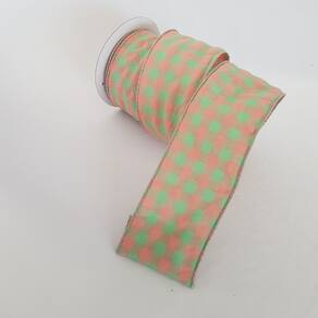 Fita Decorativa aramada em poliéster xadrez rosa e verde, Rolo com 9,14m de comprimento X 6.50cm de largura.