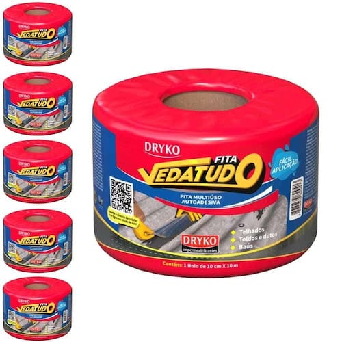 Kit Fita Autoadesiva Asfáltica Vedatudo 10 CM x 10 Metros com 6 Unidades FVD10 DRYKO
