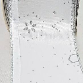 Fita Branca E Prata Natalina Floral 6Cmx9M Natal Decorativa