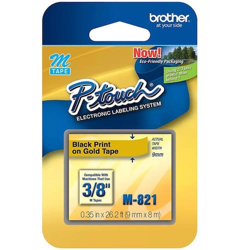 A fita M-821 é perfeita para sua organização em casa, na escola ou no escritório. Cada cartucho de fita possui 8 metros de comprimento e são fáceis de trocar. Para Rotuladores PT-70, PT-80, PT-90