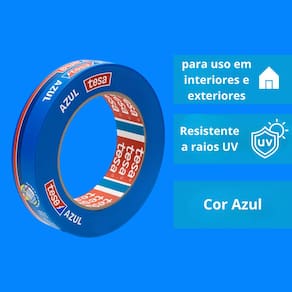 Ficha Técnica: Marca: Tesa Modelo: Fita Crepe Imobiliária Cor: Azul Comprimento: 40 metros Largura: 24 milímetros Uso: Interno e Externo Aplicação: Pintura, demarcação e acabamento