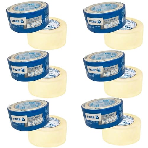Fita Crepe Uso Geral Pintura 48MMX50M Ideal para proteger superfícies e garantir acabamentos limpos e profissionais, a Fita Crepe Tigre é a escolha certa para quem busca praticidade em trabalhos de pintura e reformas. Ela adere facilmente e evita manchas indesejadas, proporcionando resultados impecáveis. Com qualidade superior, a fita conta com excelente aderência e resistência, sendo indicada tanto para uso doméstico quanto . Seu desempenho confiável garante que ela permaneça firme durante o uso, sem descolar ou deixar resíduos após a remoção. Prática e fácil de aplicar, a Fita Crepe Tigre pode ser Utilizado em diversas superfícies e removida sem esforço. Isso proporciona mais agilidade no dia a dia e economia de tempo em cada etapa do serviço. DIFERENCIAIS - Alta aderência com remoção limpa: não deixa resíduos de cola ao ser retirada. - Uso versátil: ideal para pintura, mascaramento, proteção e fixações leves. -largura de 48mm: cobre áreas maiores com menos desperdício de material. ESPECIFICAÇÕES TÉCNICAS Dimensões: 48 mm de largura x 50 metros de comprimento Material: papel crepado com adesivo à base de borracha Resistência: suporta exposição moderada a calor e umidade por curtos períodos Cor: bege Indicação: uso interno, para pintura e proteção de superfícies ITENS INCLUSOS 06 Rolos de Fita Crepe 48MM x 50M Marca: Não Informado Ean: 7894141434274