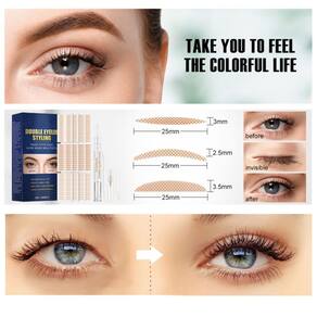 Marcador: fita de elevação instantânea de pálpebras. Cria facilmente pálpebras duplas naturais e profundas. Natural e invisível. Fita de silicone plana e fina. Duração o dia todo. 3 tamanhos diferentes. 480 unidades. Descrição: Tom de pele e design texturizado que são invisíveis na natureza. Isso não afetará sua maquiagem diária, mas ajuda seus olhos a parecerem naturais e brilhantes. Diferentes tamanhos de tiras de pálpebras fornecem pálpebras duplas de diferentes larguras. Você pode escolher de acordo com a espessura das pálpebras, pois ajuda a criar a maquiagem perfeita para os olhos.