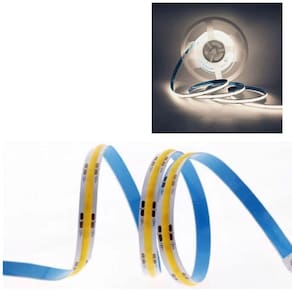 A versão COB (Chip on Board) de fitas LED identifica produtos onde o dispositivo LED é contínuo, isso é, ao invés de vários pontos de iluminação como em fitas comum, ele apresenta um dispositivo LED continuo atraves de todo o comprimento, permitindo uma maior qualidade de iluminaçao.