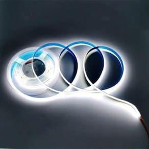 A versão COB (Chip on Board) de fitas LED identifica produtos onde o dispositivo LED é contínuo, isso é, ao invés de vários pontos de iluminação como em fitas comum, ele apresenta um dispositivo LED continuo atraves de todo o comprimento, permitindo uma maior qualidade de iluminaçao.