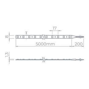 Dimensões AxLxP (mm): 13x8x5000Garantia: 2 anos junto ao fabricanteGrau de Proteção: IP 20Dimerizável: Sim, utilizando fonte dimerizável StellaFluxo Luminoso: 450lm/mIRC (Índice de Reprodução de Cor):>70Potência: 5W/mQuantidade de Leds: 60 LEDs/mTipo de Led: SMD2835/mUnidade de Corte: a cada 50mmVida Útil: 15.000 horasComprimento: 5 metrosLocal de Uso: InternoTensão: 12Vcc - usar somente com fonte StellaObservação: Utilize a fita apenas com acessórios e fonte Stella. A não observância deste item invalida a garantia.