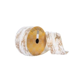 Fita de Natal Vickerman de 2,5 polegadas x 10 jardas de pele sintética marfim incrustada em ouro