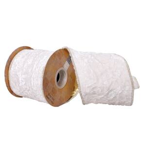 Fita de Natal Vickerman de 4 polegadas x 5 jardas de veludo triturado branco com borda com fio.