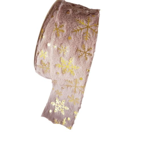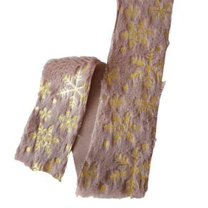 Fita Decorativa Natal em poliéster com pelúcia na cor rosa com detalhes dourados, Rolo com ;9,14m de comprimento X 6.50cm de largura.