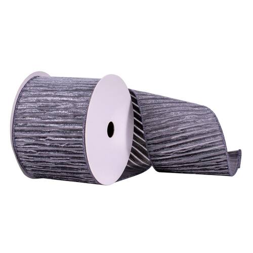 Fita Vickerman de 4 polegadas x 10 jardas com listras de estanho prateada, fita sazonal de Natal para embrulhar presentes, decoração de árvore - 4 polegadas de largura - Possui bordas com fio - Somente para uso interno