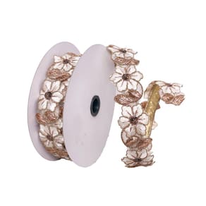 Fita de Natal Vickerman de 1,5 polegadas x 10 jardas em creme/ouro rosa com borda com fio. Adicione esta linda fita a qualquer arranjo, árvore de Natal ou como um toque elegante para seus projetos de embrulho. Esta fita é feita de poliéster e possui uma borda com arame que permite dobrar e modelar para facilitar a decoração. Ele mede 1,5 polegadas de largura por 5 metros de comprimento.