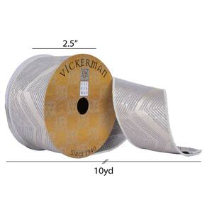 Fita de Natal Chevron Sheen cinza e bege Vickerman de 2,5 polegadas x 10 jardas