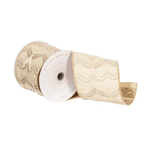 Fita de folha de pena de champanhe marfim Vickerman de 4 polegadas x 10 jardas.
