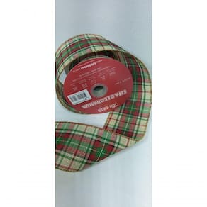 - 1 - Fita Decorativa Xadrez Verde E Vermelho Com Dourado