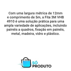 3m vhb 4910 é uma fita dupla face de alta performance, projetada para proporcionar adesão permanente em uma ampla variedade de materiais. Com sua tecnologia avançada, a fita vhb very high bond oferece uma solução durável e confiável para aplicações exigentes, como união de metais, vidros, plásticos e outros materiais difíceis de aderir.