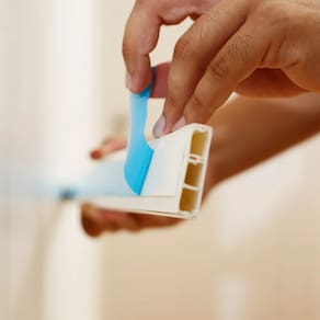 2. Corte a fita na medida e quantidade certas para sustentar o objeto que deseja fixar. Cada 10 cm sustentam 600 g. Para isso é fundamental posicionar bem a fita e esperar 48 horas para ela atingir 100% da sua capacidade de carga.