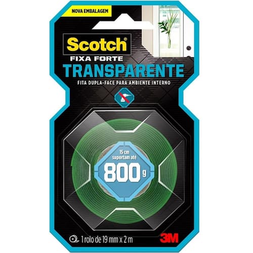 A Fita Dupla Face 3M Scotch Fixa Forte Transparente é praticamente invisível e proporciona fixação permanente de qualidade profissional. Sua aplicação limpa e sem barulho dispensa o uso de pregos e parafusos. É perfeita para fixação discreta de objetos em qualquer superfície lisa, como paredes, acrílicos, vidros, plásticos, metais, madeiras com verniz ou pintadas e revestimentos (que não recebam umidade), em ambientes internos. Não amarela com o passar do tempo.