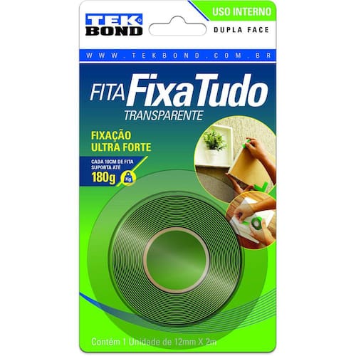 Fita Dupla Face em Silicone Interna 12mm com 2 Metros A Fita Dupla Face em Silicone Interna de 12mm com 2 metros é indicada para a fixação de objetos em paredes e outras superfícies sem a necessidade de furos, quebras e reformas. É de fácil aplicação e recomendada para ambientes internos, longe de intempéries. Medidas aproximadas do produto: - Comprimento: 18 cm - Altura: 4 cm - Largura: 11 cm - Peso: 0,5 g Marca: Agroaves Ean: 7898472262575