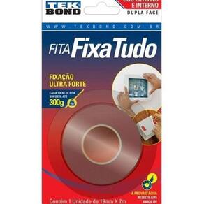 Fita Fixa Tudo é uma fita acrílica indicada para promover fixação ultra forte de maneira fácil, rápida e segura. Adaptada ao uso interno e externo, resiste aos efeitos da água e raios UV. Permite pendurar quadros, objetos de decoração, canaletas, entre outras peças. Adere em várias superfícies, como madeira, parede, vidro, acrílico e metal.