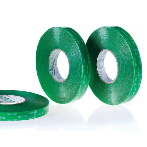 Fita dupla face feita de massa de adesivo acrílico transparente.