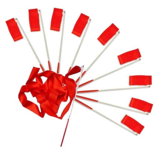 Cumprimento do estilete 50 CM, comprimento da fita 400 CM largura da fita 4 CM Material estilete: fibra fita Material: Cetim cor: VERMELHO o pacote Inclui: 10 PC Fita com estilete