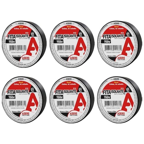 Informações Adicionais do Produto: Com material de PVC flexível, agente antichamas e adesivo à base de borracha Garantem que sua obra esteja segura e atenda aos rigorosos padrões de mercado Ideal para reparos e isolamentos profissionais de fios e cabos elétricos, pois possui alta resistência e versatilidade Atende a uma ampla variedade de ocorrências em residências, comércios, indústria e meio automotivo Possui espessura nominal de 0,13mm, e se apresenta na cor preta, com um dorso composto por PVC flexível e memória elástica Agente antichamas capaz de suportar até 750V