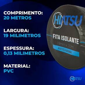 - - Fita Isolante Antichama 0,13mm x 19mm x 20m cor preta Hiatsu
