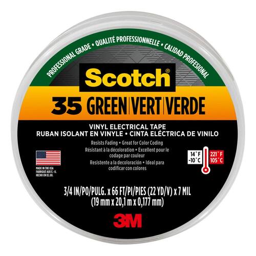 Fita de codificação elétrica de vinil verde 3M Scotch 35 — 0,75 polegadas x 66 pés, 3 polegadas de núcleo — Isolamento premium, retardante de chamas, resistente a intempéries — Ideal para identificação de fase e marcação de segurança —
