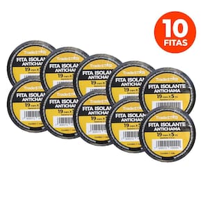 Não perca tempo e adquira agora mesmo o Kit 10 Rolos Fita Isolante Antichama 19mm x 5 Metros Preta, um produto de qualidade que irá facilitar seus reparos elétricos! Marca: Tradestar