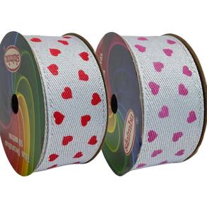 Estilo Jeans com Glitter: A fita apresenta um design que imita o estilo jeans, com adição de detalhes em lurex e glitter em formato de corações, proporcionando um toque único e moderno.