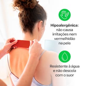 Fita Kinesio Muscle Fix Rolo Vermelho Multilaser, desenvolvida para melhorar a circulacao, ajuda a evitar lesoes e pode ser utilizada em diversas regioes do corpo. Pode ser utilizada para os ombros, pescoco, bracos e pernas. Ela e hipoalergenica, resistente a Agua, e utilizada como suporte contra lesoes e para minimizar a fadiga da atividade fisica.