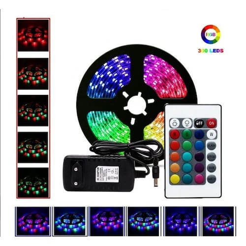 Fita Led 5050 Rgb Colorida 5mt 16 Cores + Fonte + Controle Ela é ideal para ser colocada em sanca, gesso, cozinha, banheiro, quarto e onde mais sua imaginação permitir. Pode ser colocada para complementar a iluminação do ambiente junto com Spots LED e Luminárias LED por exemplo.