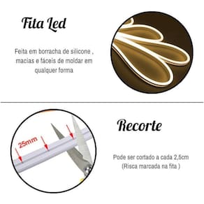 - Tensão: 12v - Índice de proteção: IP65 - Lúmens: 160/MT ou 800/5MT - Cor: Verde - Medida para Corte: 2,5 cm - Ângulo de Iluminação: 90° - Resistência a Água: Sim - Comprimento: 5 m - Espessura: 6 mm - Largura: 12 mm - Material: Silicone
