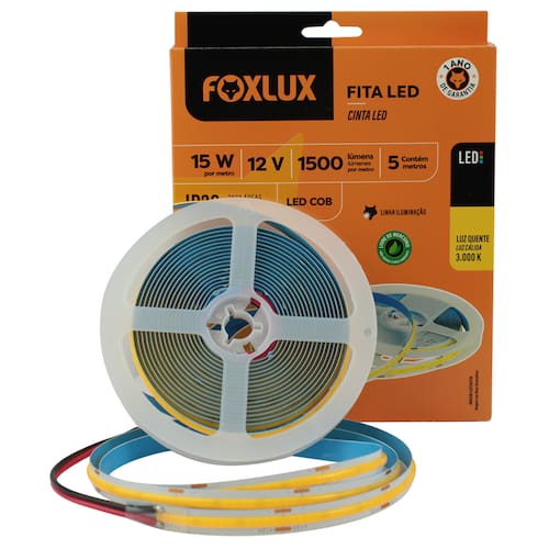 A Fita LED COB Foxlux é a solução perfeita para projetos de iluminação decorativa com acabamento uniforme, elegante e eficiente. Com tecnologia COB (Chip On Board), oferece luz contínua e sem pontos visíveis, ideal para aplicações em móveis, sancas, nichos, vitrines e ambientes residenciais ou comerciais.