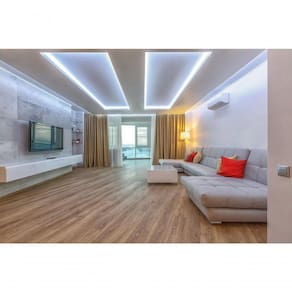 A Fita LED Interna 4,8W/m é indicada para iluminação indireta ou decorativa de ambientes internos como sancas de gesso, rodapé de armários, corrimão e degraus de escadas, etc.