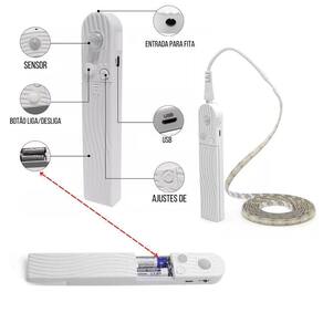 A Fita de Led flexível com sensor de presença/movimento é ideal para serem utilizadas em decorações em quartos, paredes, tetos, apartamentos, salões de festas, corredores, nichos, armários, espelhos, penteadeiras, guarda roupas, closets, escritórios, placas, letreiros, painéis, gabinetes, sancas, corrimãos, escadas, debaixo de camas, gessos e em vários locais com criatividade proporcionando uma iluminação agradável e elegante. Especificações do produto: - Cor da Luz: Branco Frio - Material: Fita adesiva com proteção de silicone - Iluminação: LED SMD Modelo 2835 - Total de LED: 60 Leds por metro - 180 Leds no total - Alimentação: Pode ser utilizada 4 pilhas AAA ou uma fonte de energia DC-5V através de um cabo USB Tipo V8 - Acompanha Fonte de Alimentação de 5v 2A com cabo USB V8 de 1M metro - Ângulo de Indução: Até 120º - Potência: 3w - Classificação: IP65 - No controle vem acompanhada uma fita dupla face para ser fixada no local desejado onde o sensor é melhor posicionado. - Indicado para uso: Interno/Externo - Pode ser cortada a cada 17mm 1,7cm nos pontos indicados na fita - Distância de Detecção do Sensor de Presença: Até 3m Manual rápido: - O controle possui 3 modos que será acionado no botão liga/desliga . Quando for escolhido algum dos modos de sensor, a luz apagará e já estará em funcionamento. 1- Com a imagem de um Sol o sensor funciona no claro e no escuro. 2- Com a imagem de uma Bolinha a luz fica ligada diretamente com o sensor desativado. 3 - Com a imagem de uma Lua o sensor somente funcionará no escuro, não acenderá se o lugar estiver com luz. - Também possui um botão de uma seta para cima que controla intensidade do brilho da luz da fita. - Para controlar o tempo da luz é somente apertar a seta do controle com a fita ligada que poderá alterar para 10s, 30s, 60s ou 120s. - Procure um especializado para os cortes, emendas, escolha das fontes apropriadas de acordo com o tipo de projeto e para a instalação das fitas com segurança. - ATENÇÃO: A fita não deverá ser ligada diretamente na energia elétrica 110/220v sem uma fonte de 5v e nem cortada fora dos pontos indicados para não danificar o produto. Medidas da Fita: - Comprimento: 3 Metros - Largura: 0,8cm 8mm Itens inclusos: - 1 Fita de Led de 3 Metros - 1 Controle com sensor de movimento - 1 Fonte de 5V 2A com cabo USB de 1 metro