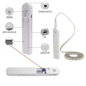 A Fita de Led flexível com sensor de presença/movimento é ideal para serem utilizadas em decorações em quartos, paredes, tetos, apartamentos, salões de festas, corredores, nichos, armários, espelhos, penteadeiras, guarda roupas, closets, escritórios, placas, letreiros, painéis, gabinetes, sancas, corrimãos, escadas, debaixo de camas, gessos e em vários locais com criatividade proporcionando uma iluminação agradável e elegante. Especificações do produto: - Cor da Luz: Branco Neutro - Material: Fita adesiva com proteção de silicone - Iluminação: LED SMD Modelo 2835 - Total de LED: 60 Leds por metro - 180 Leds no total - Alimentação: Pode ser utilizada 4 pilhas AAA ou uma fonte de energia DC-5V através de um cabo USB Tipo V8 - Acompanha Fonte de Alimentação de 5v 2A com cabo USB V8 de 1M metro - Ângulo de Indução: Até 120º - Potência: 3w - Classificação: IP65 - No controle vem acompanhada uma fita dupla face para ser fixada no local desejado onde o sensor é melhor posicionado. - Indicado para uso: Interno/Externo - Pode ser cortada a cada 17mm 1,7cm nos pontos indicados na fita - Distância de Detecção do Sensor de Presença: Até 3m Manual rápido: - O controle possui 3 modos que será acionado no botão liga/desliga . Quando for escolhido algum dos modos de sensor, a luz apagará e já estará em funcionamento. 1- Com a imagem de um Sol o sensor funciona no claro e no escuro. 2- Com a imagem de uma Bolinha a luz fica ligada diretamente com o sensor desativado. 3 - Com a imagem de uma Lua o sensor somente funcionará no escuro, não acenderá se o lugar estiver com luz. - Também possui um botão de uma seta para cima que controla intensidade do brilho da luz da fita. - Para controlar o tempo da luz é somente apertar a seta do controle com a fita ligada que poderá alterar para 10s, 30s, 60s ou 120s. - Procure um especializado para os cortes, emendas, escolha das fontes apropriadas de acordo com o tipo de projeto e para a instalação das fitas com segurança. - ATENÇÃO: A fita não deverá ser ligada diretamente na energia elétrica 110/220v sem uma fonte de 5v e nem cortada fora dos pontos indicados para não danificar o produto. Medidas da Fita: - Comprimento: 3 Metros - Largura: 0,8cm 8mm Itens inclusos: - 1 Fita de Led de 3 Metros - 1 Controle com sensor de movimento - 1 Fonte de 5V 2A com cabo USB de 1 metro