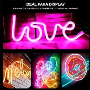 Mangueira fita Neon de 12v, possui alta flexibilidade, bem leve e de fácil manuseio.
