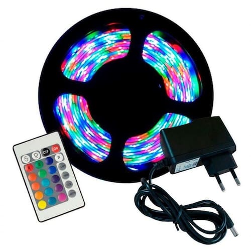 Acende em cores: Azul, Verde e Vermelho (em tons variados)