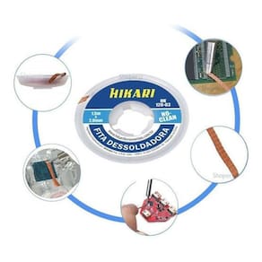 A Fita Malha Dessolda Hk120 Hikari é a solução perfeita para remover solda em furos, componentes e trilhas em placas de circuito impresso. Com uma largura de 2,5mm, essa fita foi especialmente desenvolvida para garantir a qualidade das soldagens em trabalhos de soldagem e ressoldagem eletrônica.