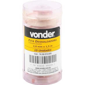Ref. Fornecedor: 7438015020Marca: VonderConteúdo da Embalagem:1 Rolo de fita/malha dessoldadoraAplicações e dicas de uso:Indicada para absorver o excesso de solda nos reparos eletrônicos e/ou remover os resíduos de soldas anteriores no componente, visando efetuar a limpeza e permitir uma nova soldagemCaracterísticas Técnicas:Material: Cobre Largura: 2,0 Comprimento: 1,5 m CDC : legal: 90 dias