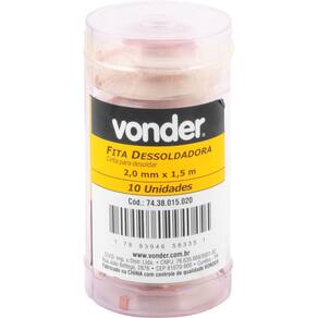 Ref. Fornecedor: 7438015020Marca: VonderConteúdo da Embalagem:1 Rolo de fita/malha dessoldadoraAplicações e dicas de uso:Indicada para absorver o excesso de solda nos reparos eletrônicos e/ou remover os resíduos de soldas anteriores no componente, visando efetuar a limpeza e permitir uma nova soldagemCaracterísticas Técnicas:Material: Cobre Largura: 2,0 Comprimento: 1,5 m CDC : legal: 90 dias Marca: Não Informado Ean: 7893946583354
