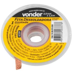 Fita malha Dessoldadora Cobre 3 mm x 1,5 m Vonder Conteúdo da Embalagem: